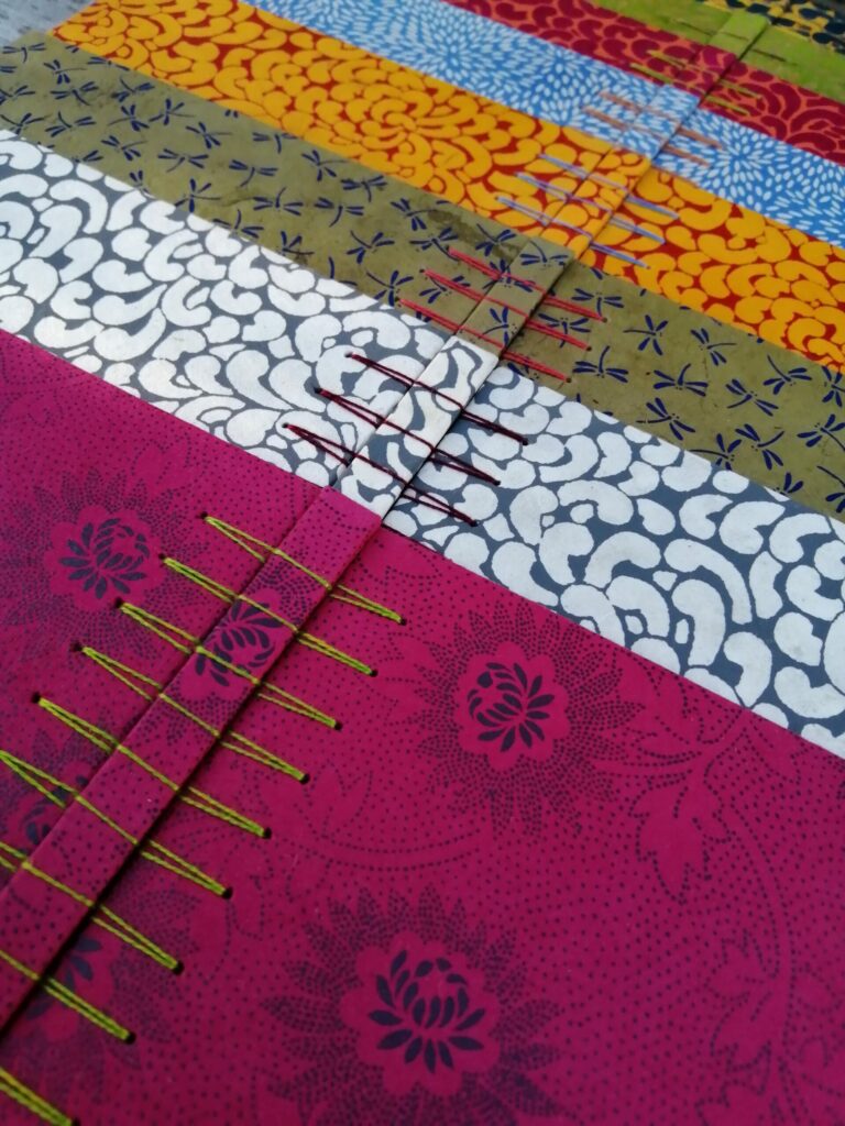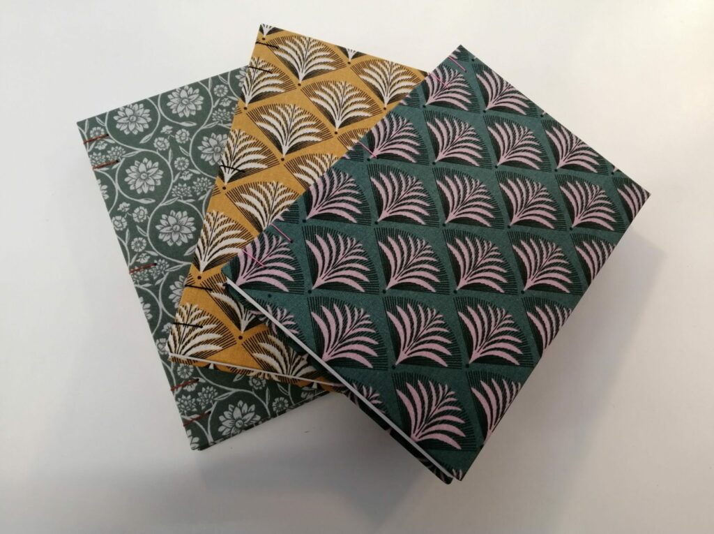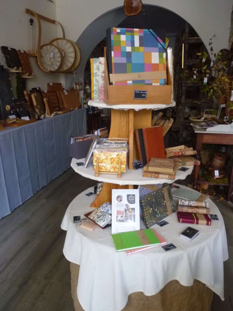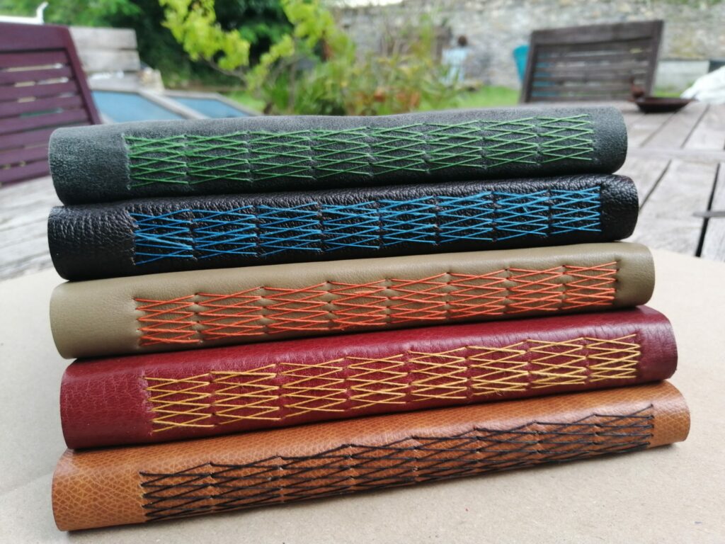 Elle utilise divers matériaux au gré de son inspiration du moment et crée sur mesure livres d’or, de naissance, albums photos, reliures personnalisées, de création…