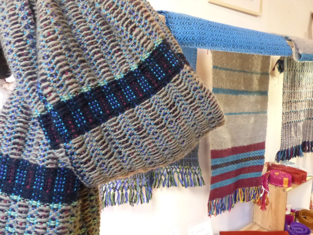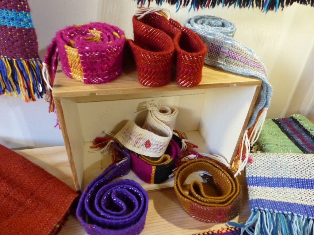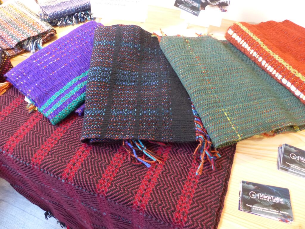 👉 Écharpes, étoles, jupes et ponchos sont tissées en modèle unique.