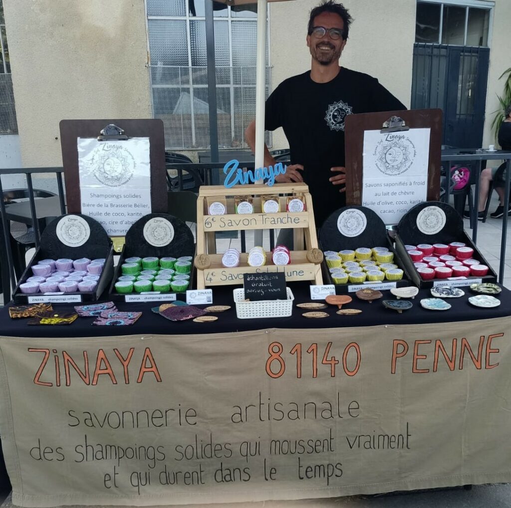 ❤️ Mathieu est artisan savonnier à Penne, où il a créé sa savonnerie ZINAYA. Passionné par les ingrédients naturels et locaux, il fabrique à la main des savons en forme de soleil et de lune, enrichis au lait de chèvre.